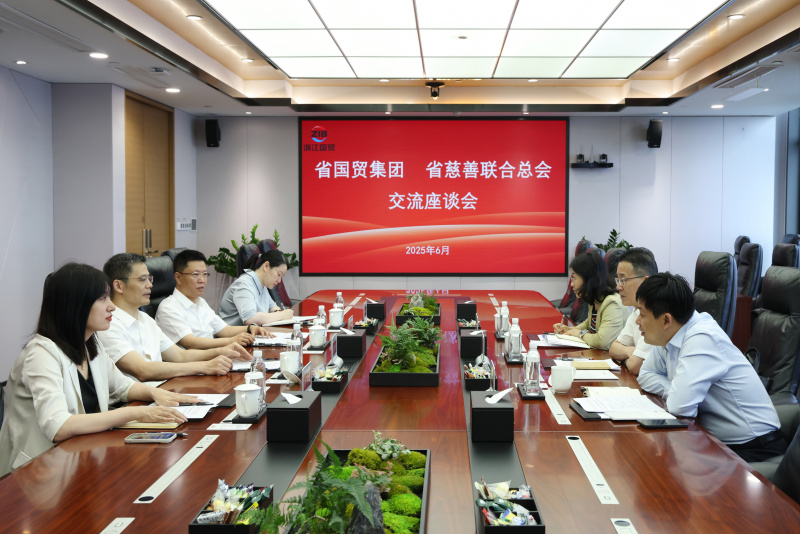 6月12日上午,省慈善聯(lián)合總會副會長沈磊一行來省國貿(mào)集團(tuán)交流座談,集團(tuán)董事長、黨委書記高秉學(xué),董事、黨委副書記來濤,集團(tuán)辦公室、黨群工作部相關(guān)負(fù)責(zé)人參加座談。雙方圍繞慈善項(xiàng)目開展情況、深化慈善合作、創(chuàng)新公益模式等主題進(jìn)行交流。